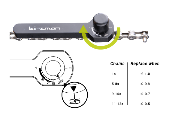 Birzman slitasjemåler til kjede.
