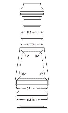 Øvereste diameter 42 mm (+/ – 0.1 mm)